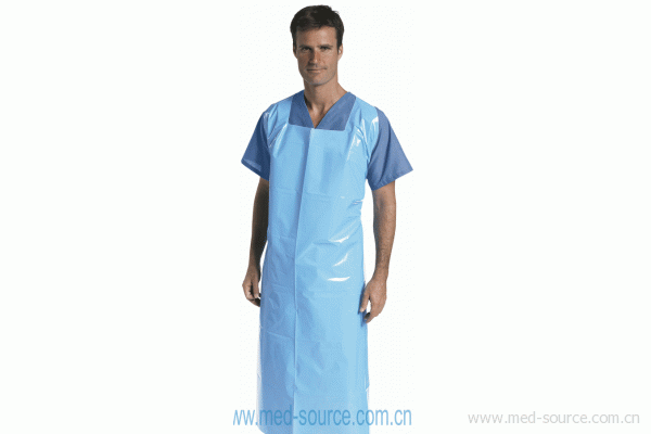 Heavyweight Apron: These heavyweight, latex-free, cysto-style, 4 mil. Aprons offer complete protection for work in the O.R., E.R., Decontamination, Morgue or any area where heavy fluid is present. Styled to easily pull over the head and tie in back. 41" x 62", Blue.